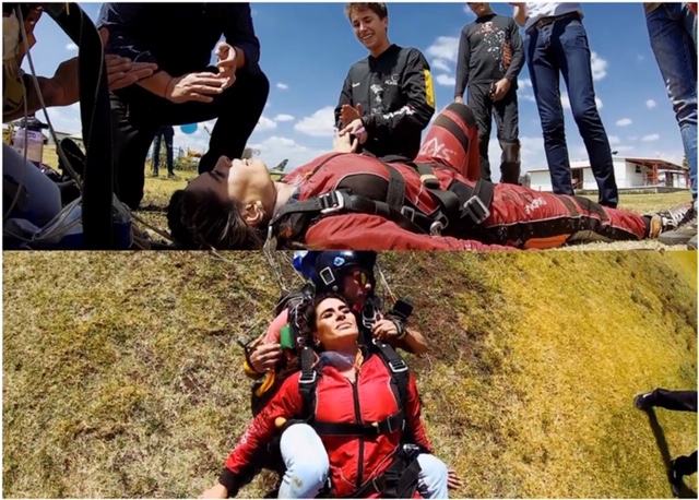 Después de concretar la idea y pese a su gran miedo, la actriz de 46 años se animó a aventarse a 13 mil pies de altura en Atlixco puebla, momento dramático que fue grabado y compartido en el canal y redes sociales del vlogger Juanpa Zurita.